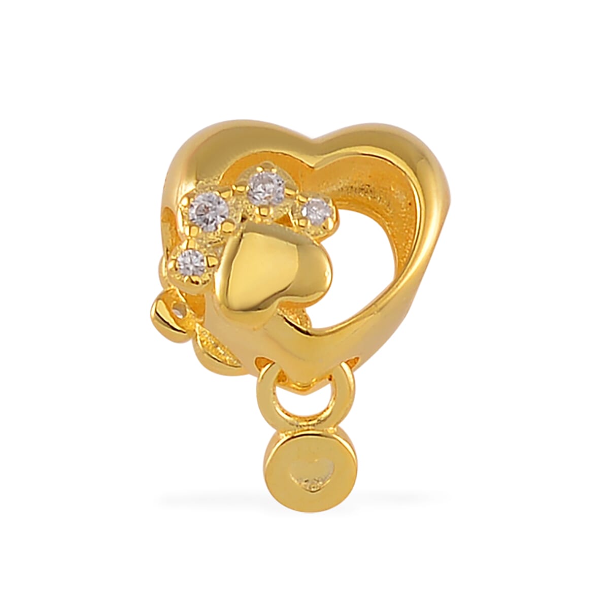 Simulated Diamond Paw Heart Charm in 14K Yellow Gold Over Sterling Silver