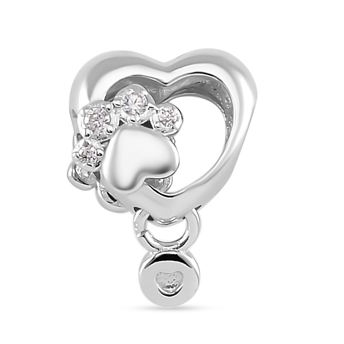Simulated Diamond Paw Heart Charm in Rhodium Over Sterling Silver