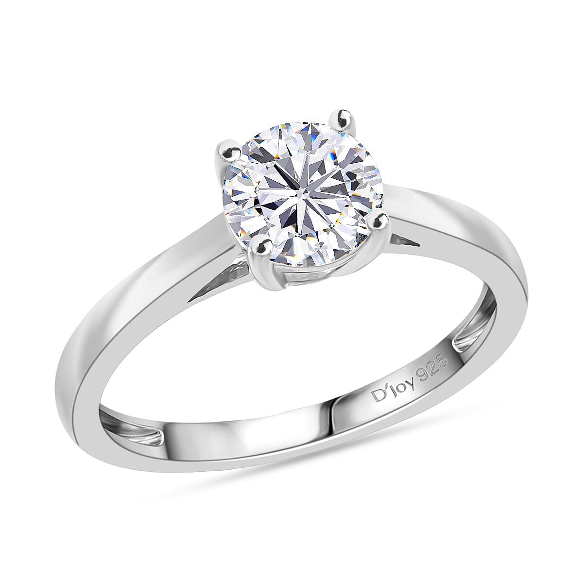 Simulated Diamond Ring in Platinum Over Sterling Silver (Size 7.0)