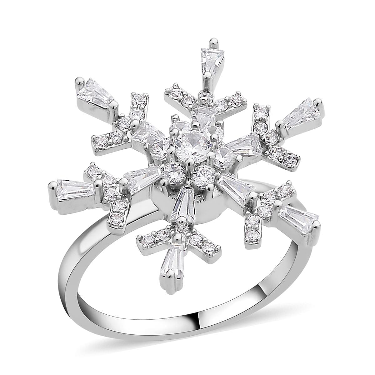 Inspired by a snowflake design, this simulated diamond ring symbolizestransformationand new changes in life.Based on the same design, this spinner ring features a metal frame studded with a cluster of round simulated gems in the center. This is highlighted by baguette-shaped and round sparkling gems on the elongated metal pattern.As the center design rotates on its axis, this ring exemplifies a beautiful visual treat.Spinner rings are known for relieving stress and anxiety. This ring perfectly represents a minimalistic design with a spinner ring style feature.Crafted in genuine metal, this pearl spinner ring suits every outfit.