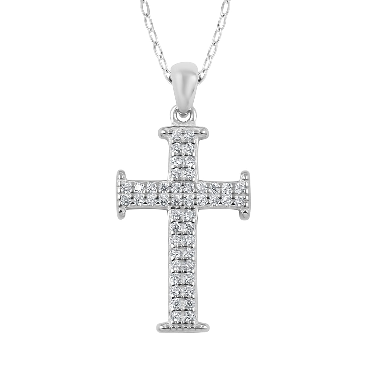Simulated Diamond Studded Cross Pendant Necklace 18 Inches in Rhodium Over Sterling Silver 1.00 ctw