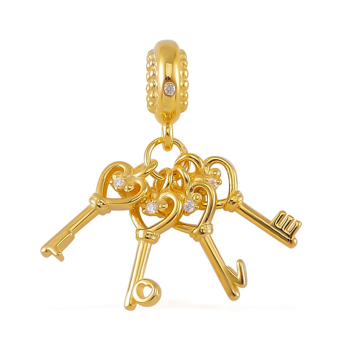 Simulated Diamond The Love Key Charm in 14K Yellow Gold Over Sterling Silver
