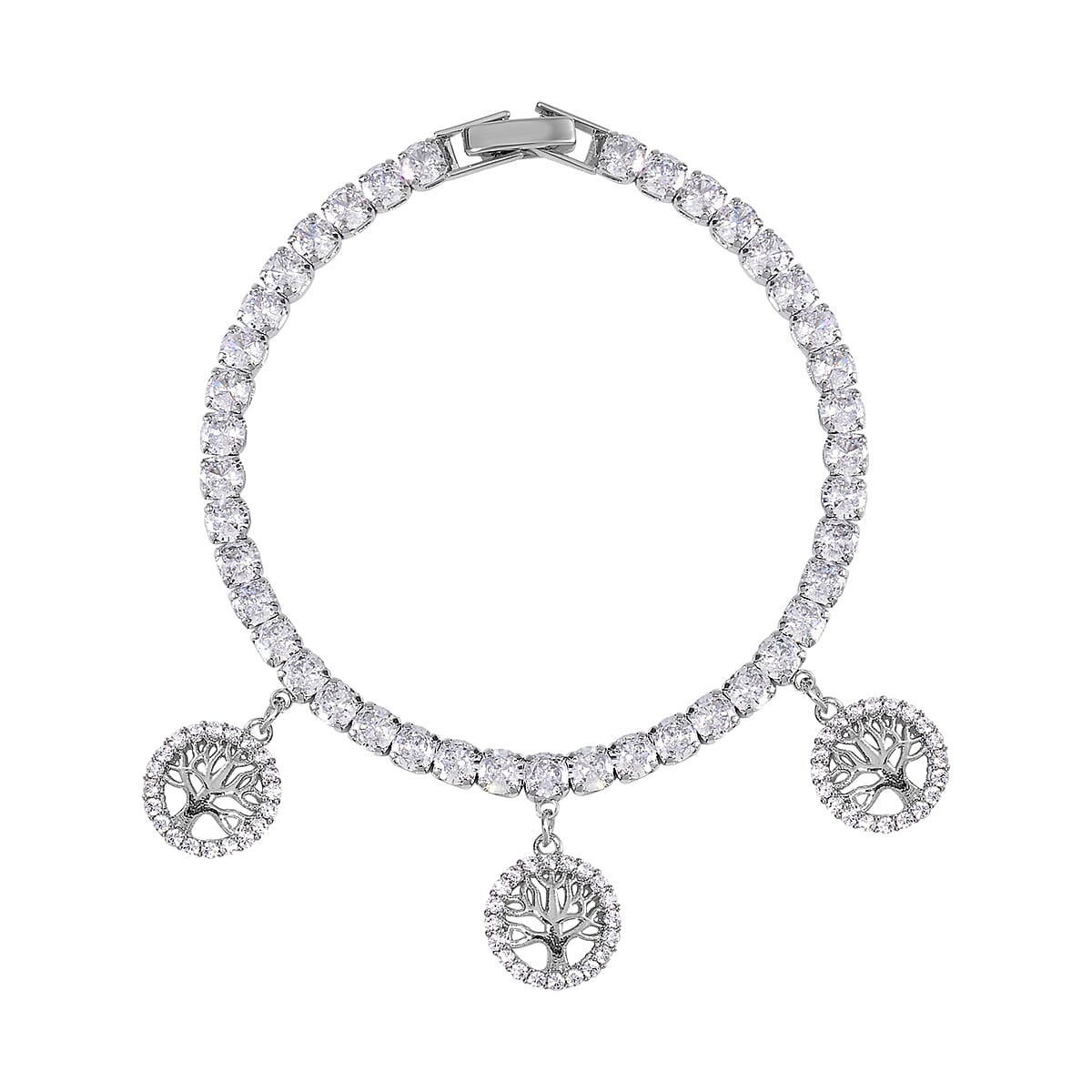 Simulated Diamond Tree of Life Charm Bracelet in Silvertone (7.50 In) 5.00 ctw