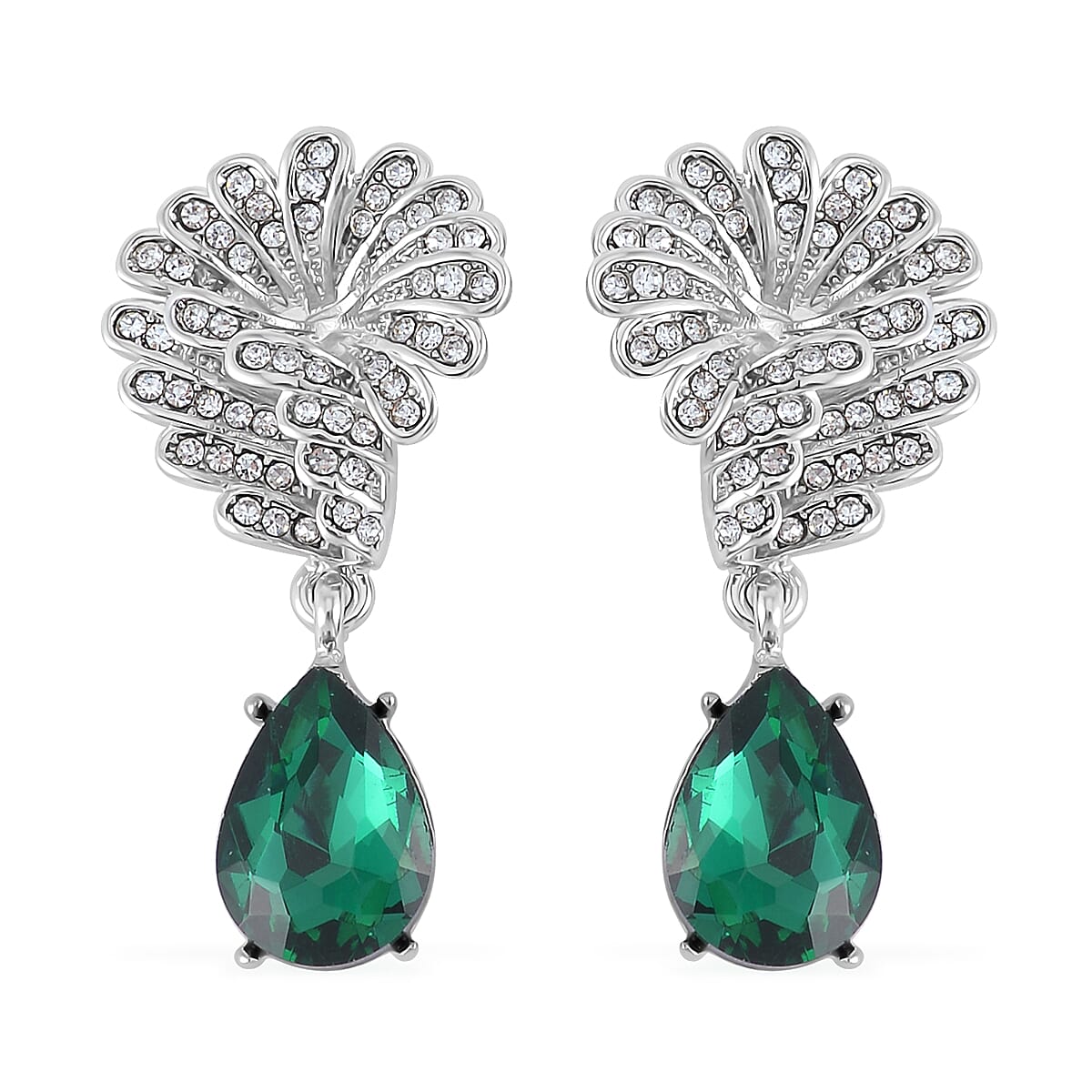 Simulated Emerald and Austrian Crystal Drop Earrings in Silvertone