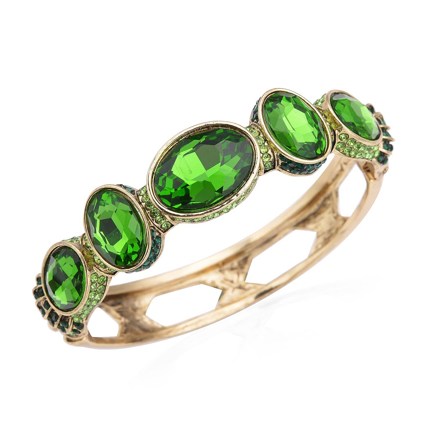 Simulated Emerald and Green Shaded Austrian Crystal Bangle Bracelet in Goldtone (7.0 in)