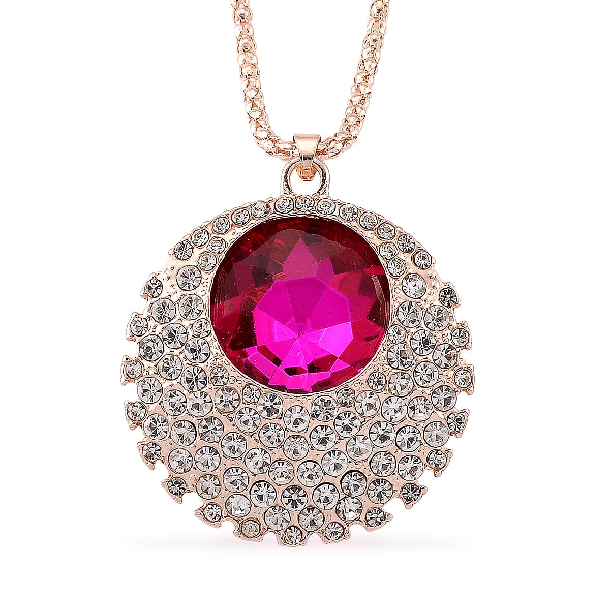 Simulated Fuchsia Sapphire and Austrian Crystal Celestial Pendant Necklace in Rosetone 24-26 Inches