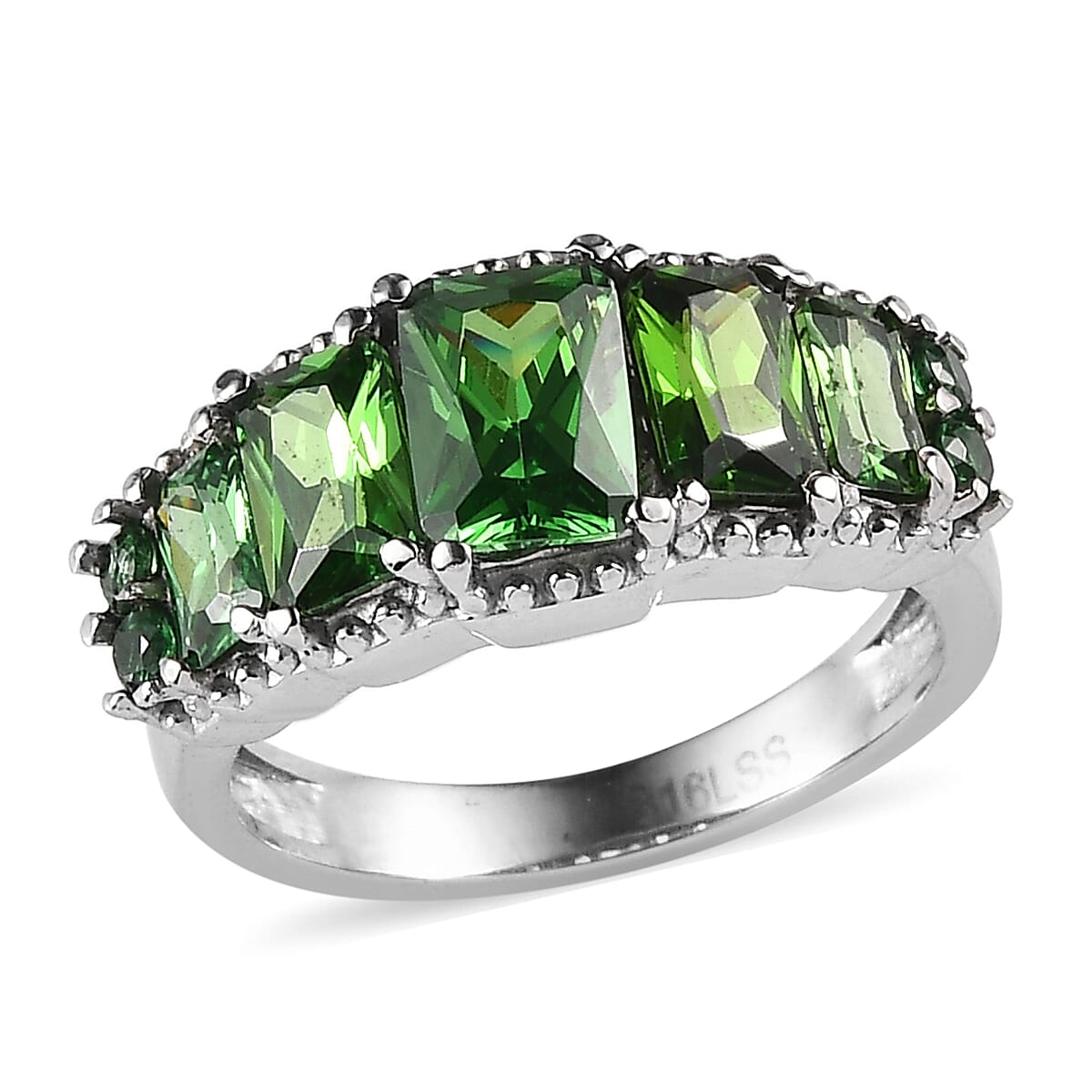 Simulated Green Diamond 4.15 ctw Stair Step Ring in Stainless Steel (Size 7.0)