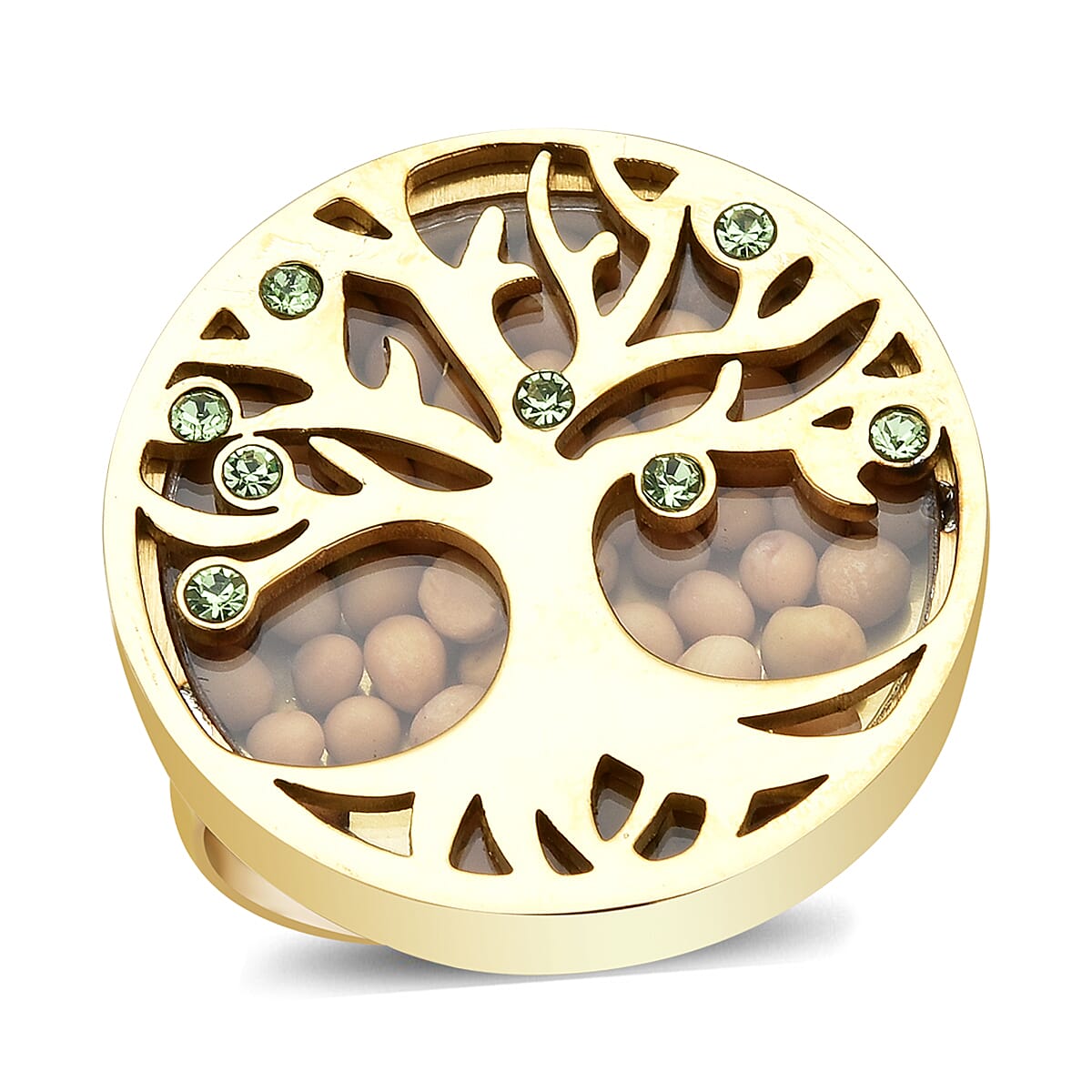 Simulated Green Diamond and Mustard Seed Tree of Life Ring in ION Plated YG Stainless Steel (Size 8.0)