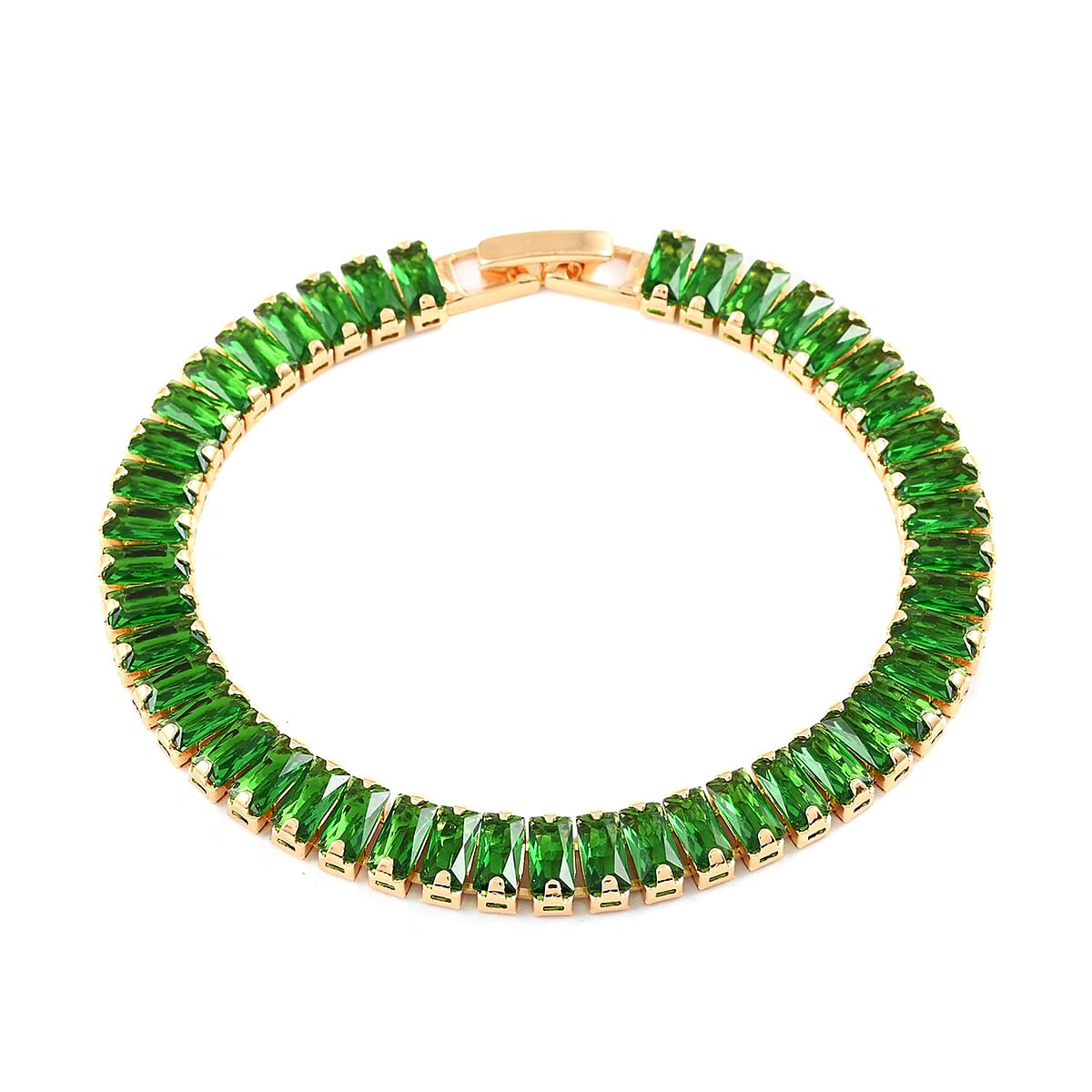 Simulated Green Diamond Tennis Bracelet in Goldtone (7.00 In) 31.50 ctw