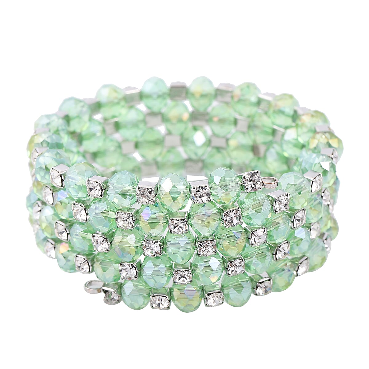 This simulated gemstone and Austrian crystal wrap bracelet is crafted from durable materials for longevity. It features an array of simulated gemstones interspersed with sparkling Austrian crystals, creating a vibrant display around the wrist.