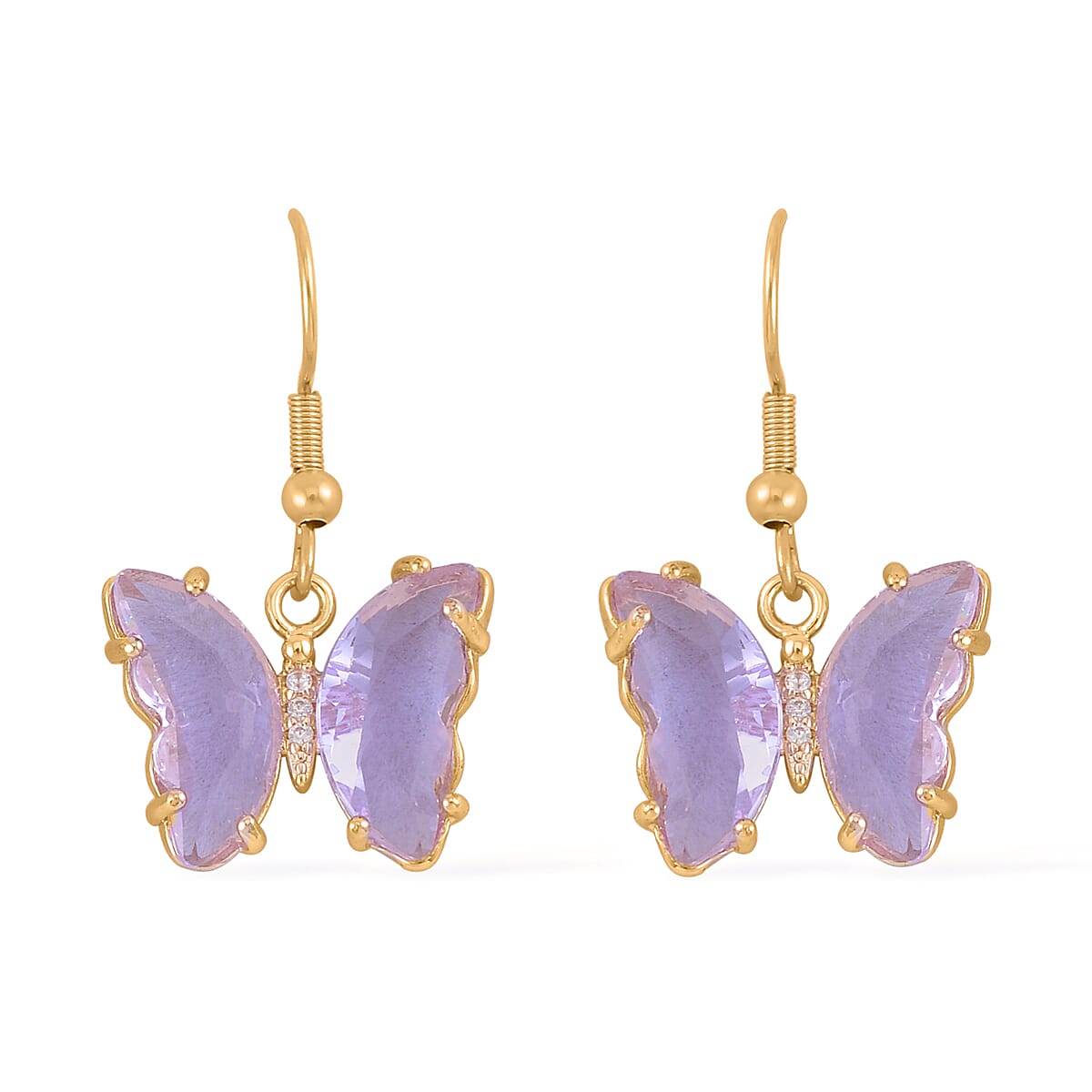 Simulated Lavender Quartz and Simulated Diamond 0.10 ctw Butterfly Earrings in Goldtone