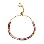Simulated Multi Color Diamond Bolo Bracelet in Goldtone (6-9In)