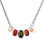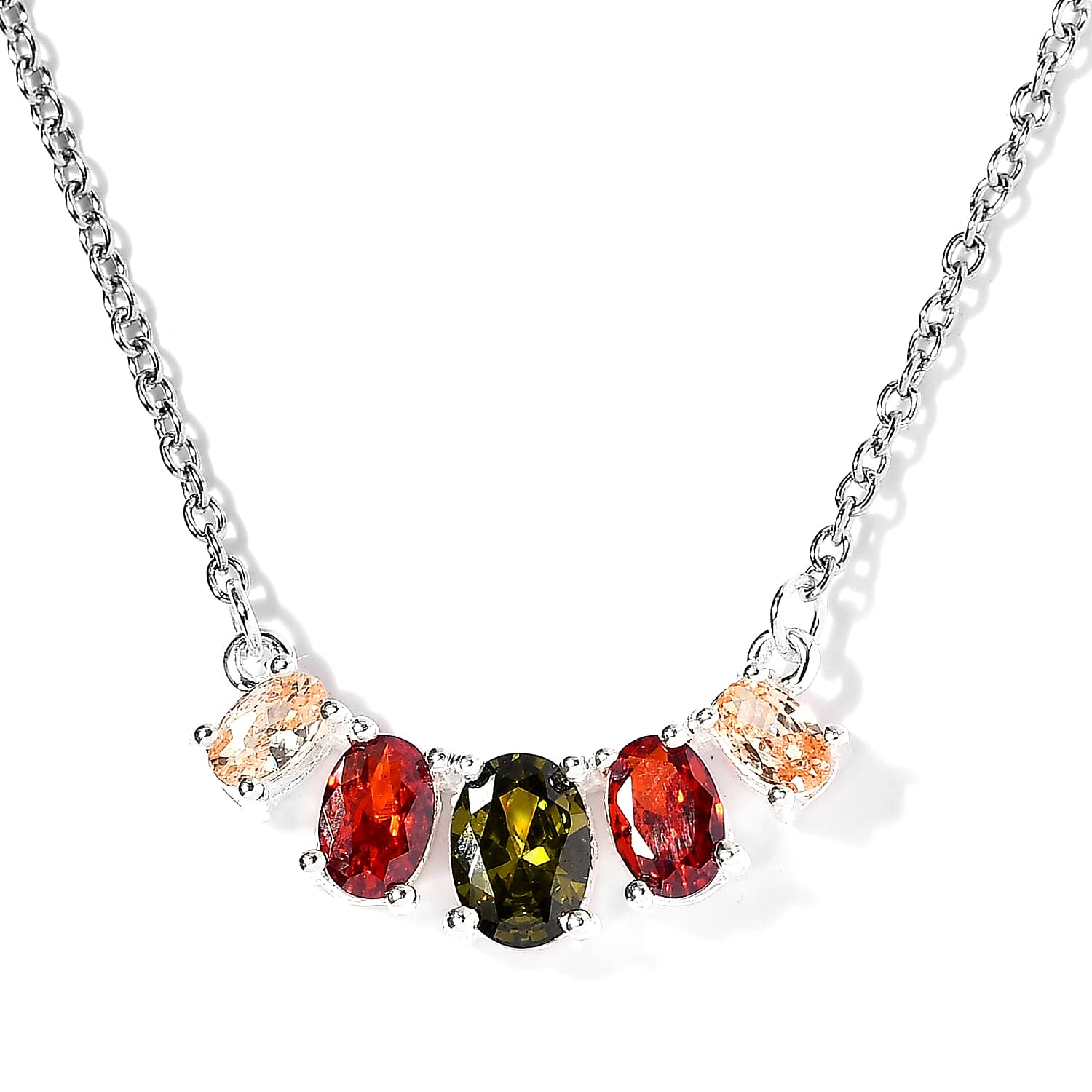 Simulated Multi Color Diamond Necklace 18 Inches in Sterling Silver and Stainless Steel 2.65 ctw