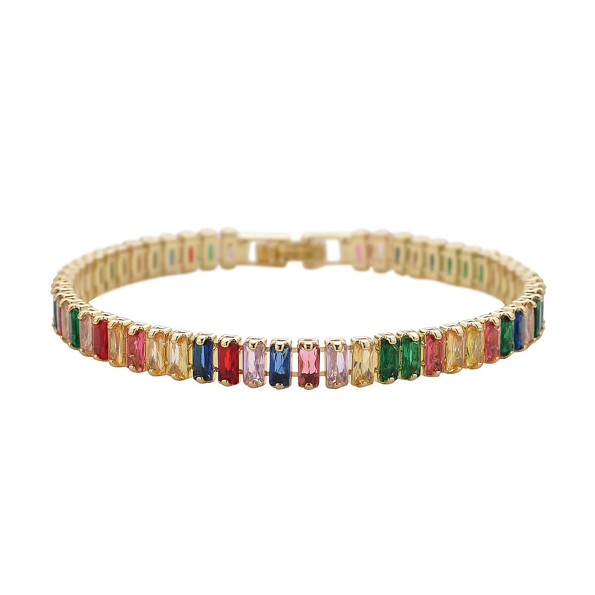 Simulated Multi Color Diamond Tennis Bracelet in Goldtone (8.00 In) 25.00 ctw