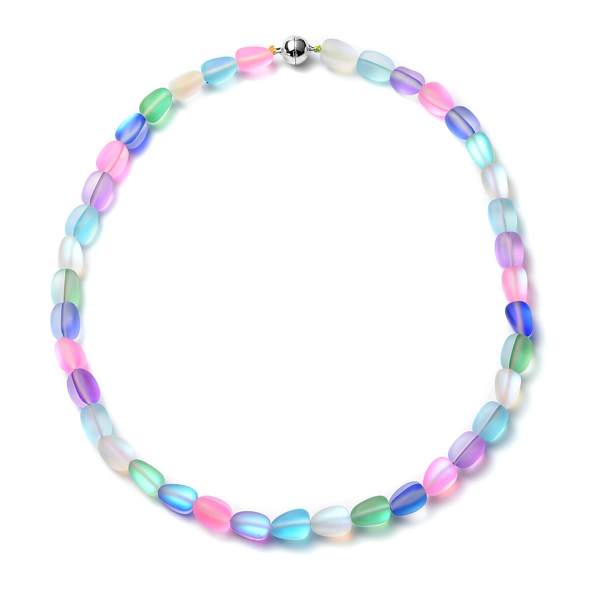 Simulated Multi Color Mystic Topaz Beaded Necklace 20 Inches in Silvertone