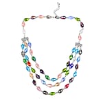 Simulated Multi Gemstone Beaded Layered Necklace 22-24 Inches in Silvertone