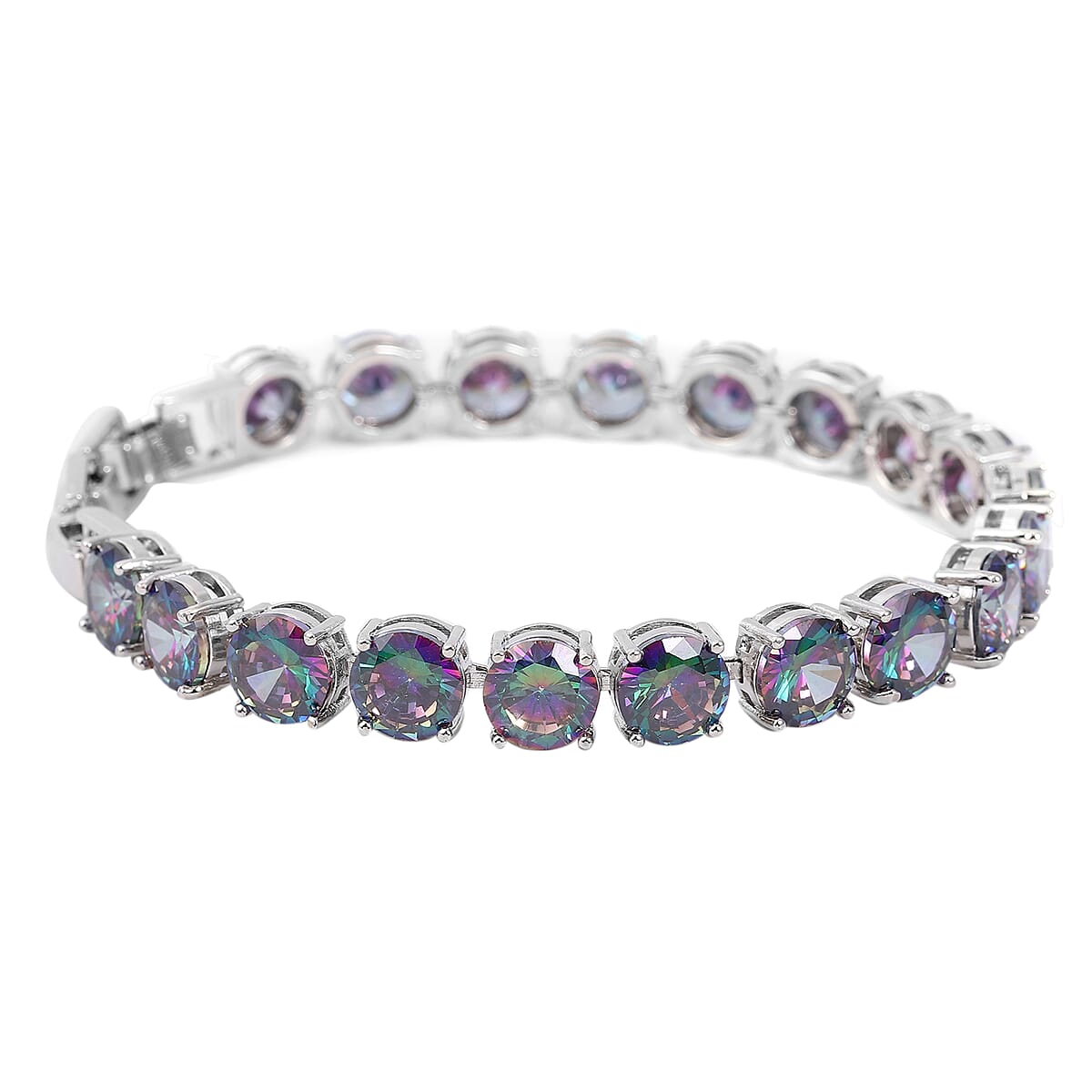 Simulated Mystic Color Topaz Tennis Bracelet in Silvertone (Adjustable Fit)