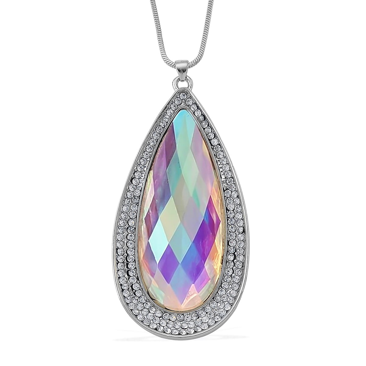 Simulated Mystic Quartz and Austrian Crystal Elongated Pendant Necklace in Silvertone 24-26 Inches