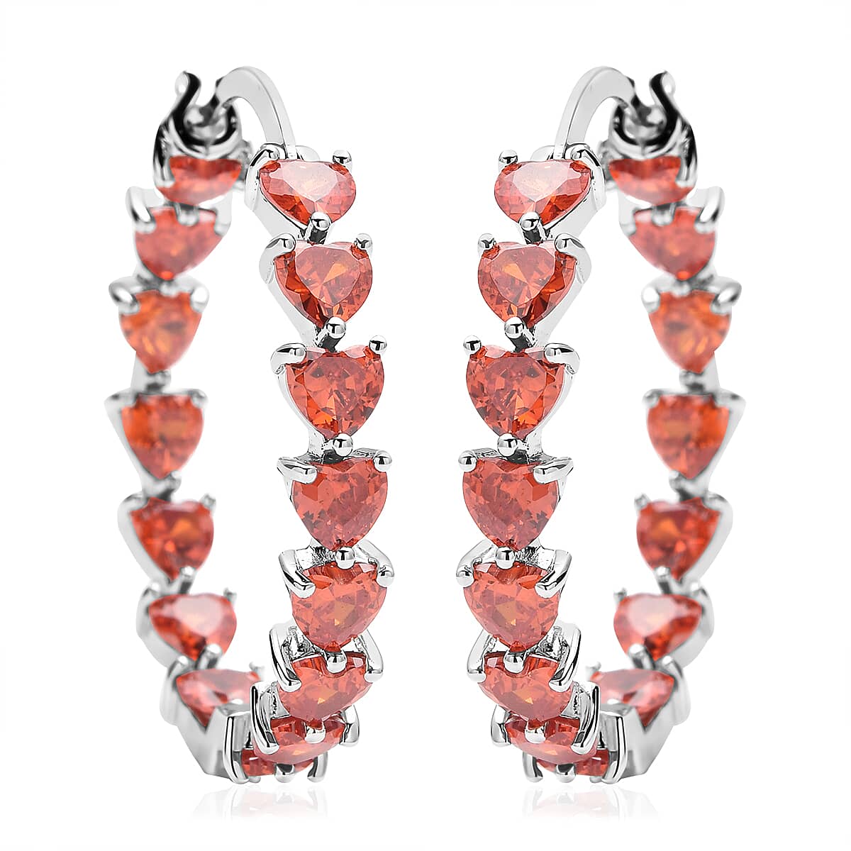 Simulated Orange Diamond Earrings in Silvertone, Inside Out Hoops, Simulated Diamond Jewelry For Women
