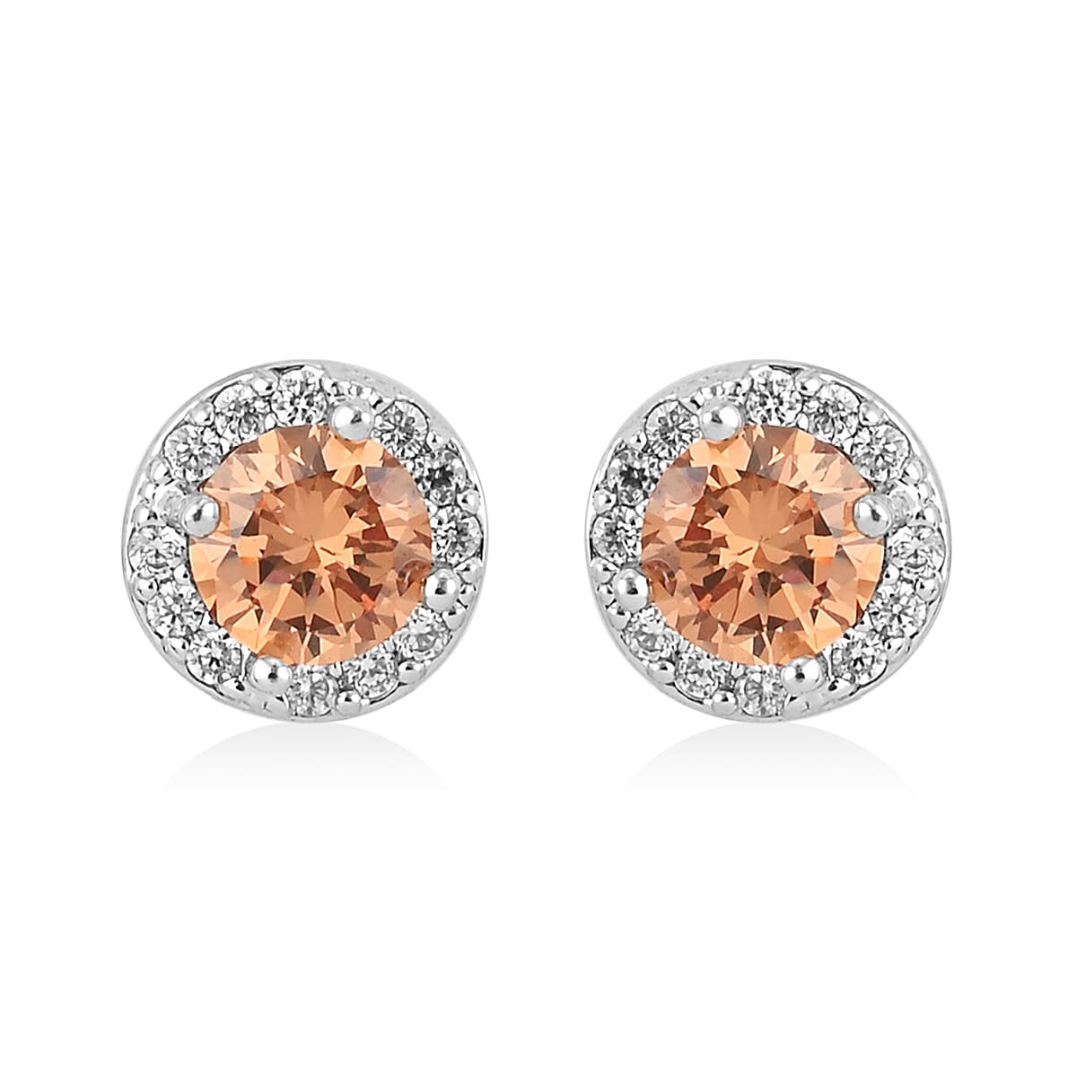 Simulated Orange Sapphire, Simulated Diamond Halo Drop Earrings in Silvertone 0.16 ctw