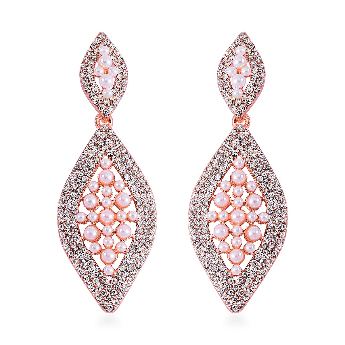 Simulated Pearl and Austrian Crystal Earrings in Rosetone