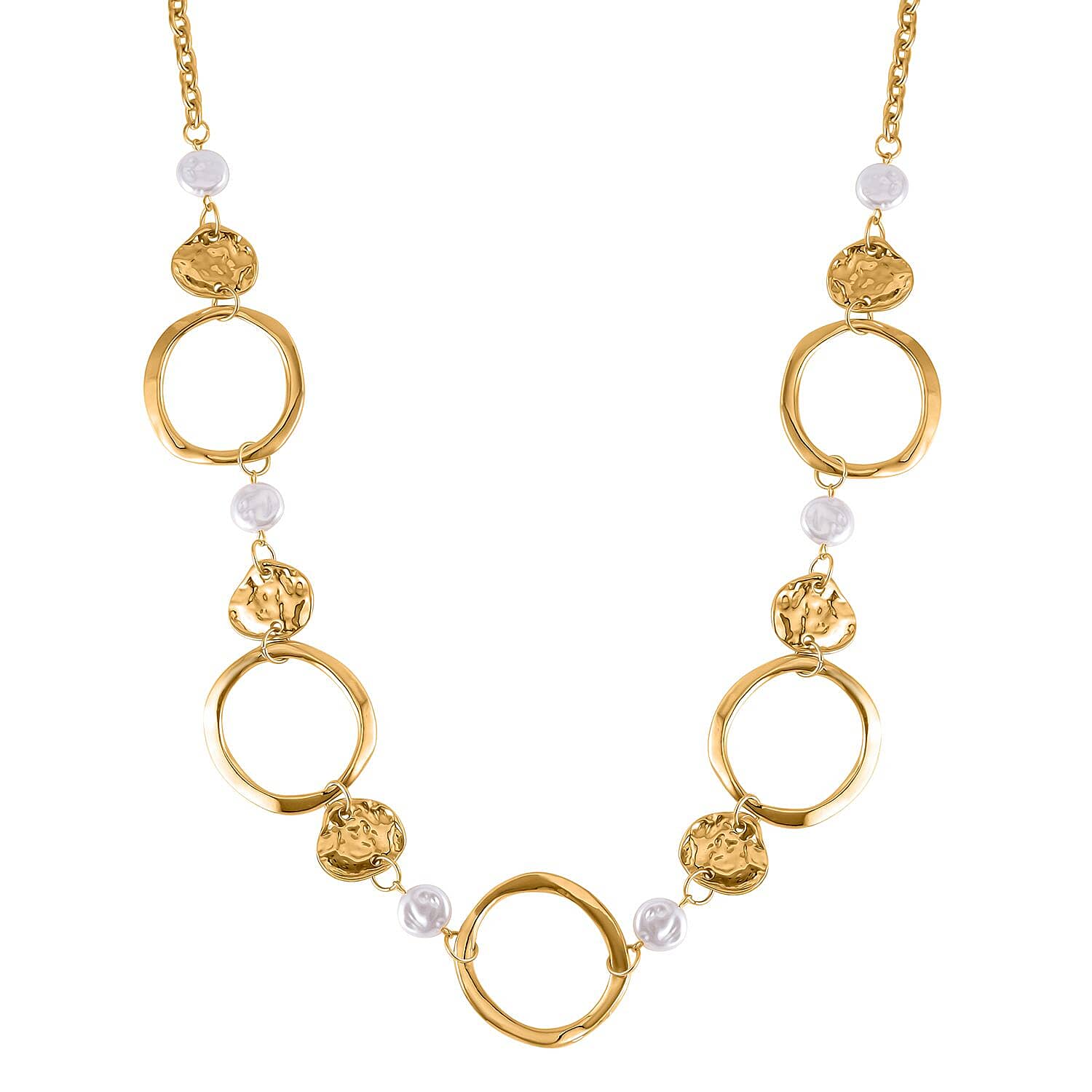 Upgrade your style with this simulated pearl necklace in durable metal. This elegant fashion necklace for women features luminous simulated pearls for timeless sophistication. Perfect for layering or wearing solo, it adds effortless elegance to both casual and evening looks.