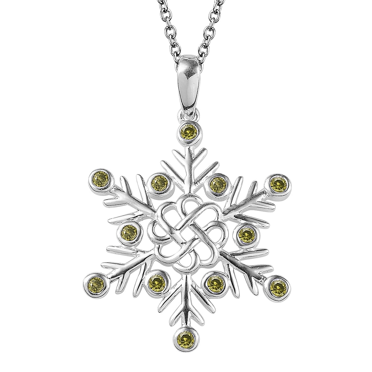 Simulated Peridot Color Diamond Snowflake Pendant in Sterling Silver with Stainless Steel Necklace 20 Inches 0.75 ctw