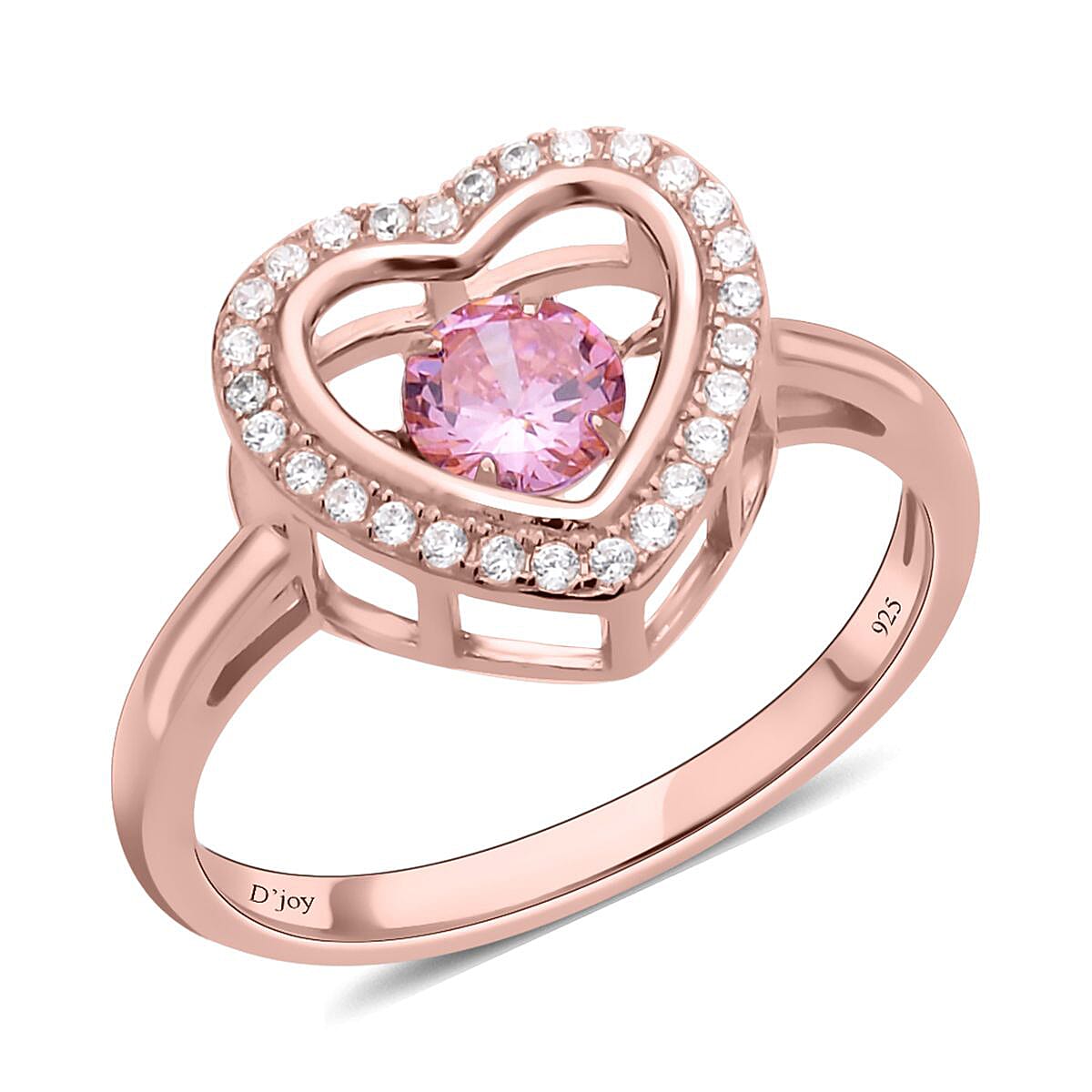 Simulated Pink and White Diamond Heart Shape Dancing Ring in 14K Rose Gold Over Sterling Silver (Size 7.0) 1.00 ctw