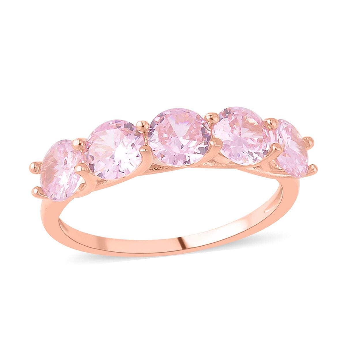 Simulated Pink Diamond 5 Stone Ring in 14K Rose Gold Over Sterling Silver (Size 9.0) 3.80 ctw