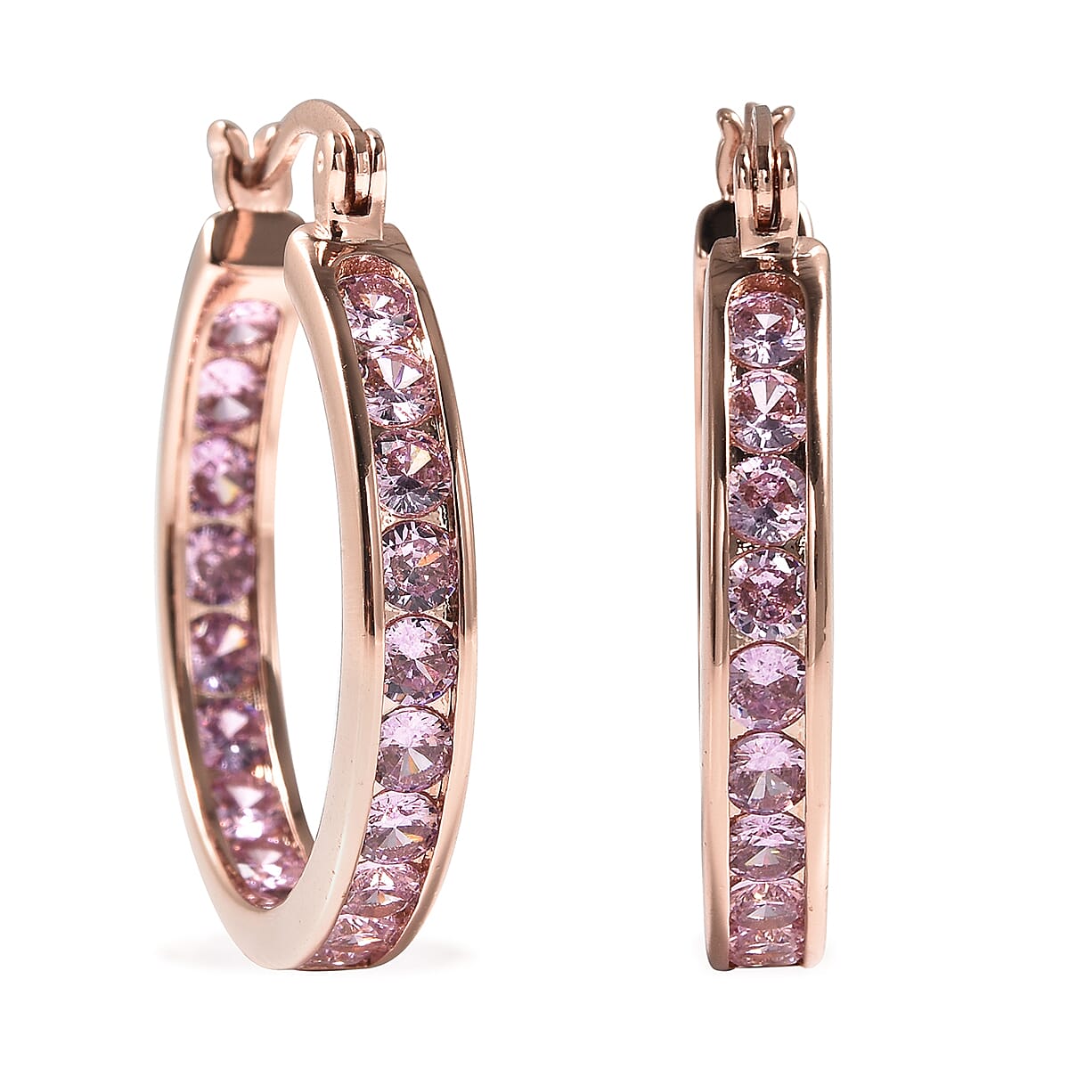 Simulated Pink Diamond Hoop Earrings in Rosetone