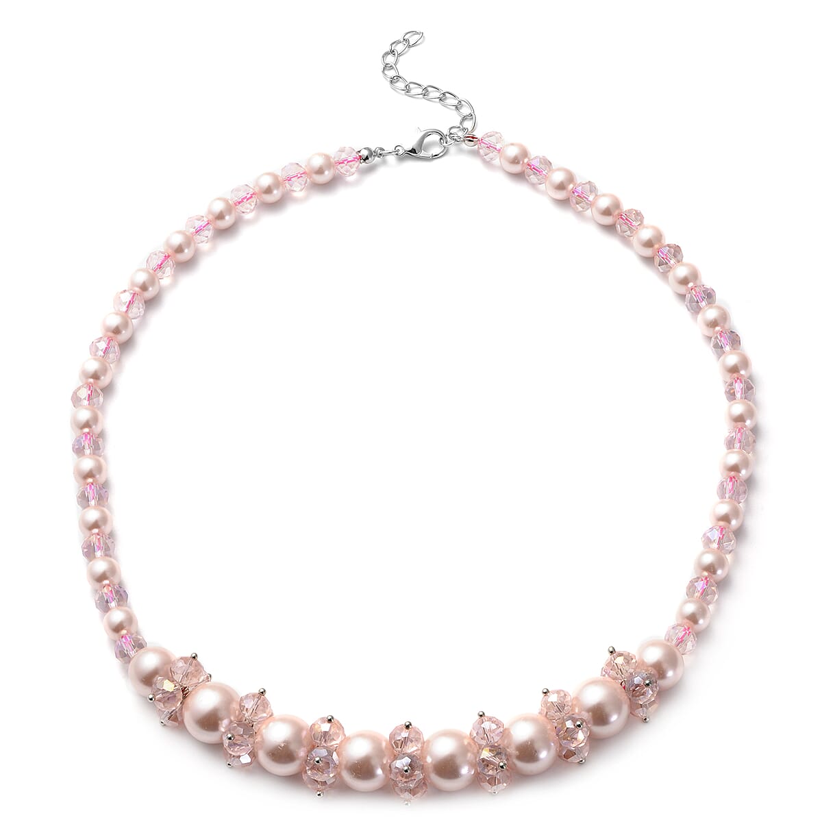Simulated Pink Pearl and Glass Beaded Necklace 20-22 Inches in Stainless Steel