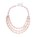 Simulated Pink Sapphire Beaded Layered Necklace in Silvertone 22-24 Inches