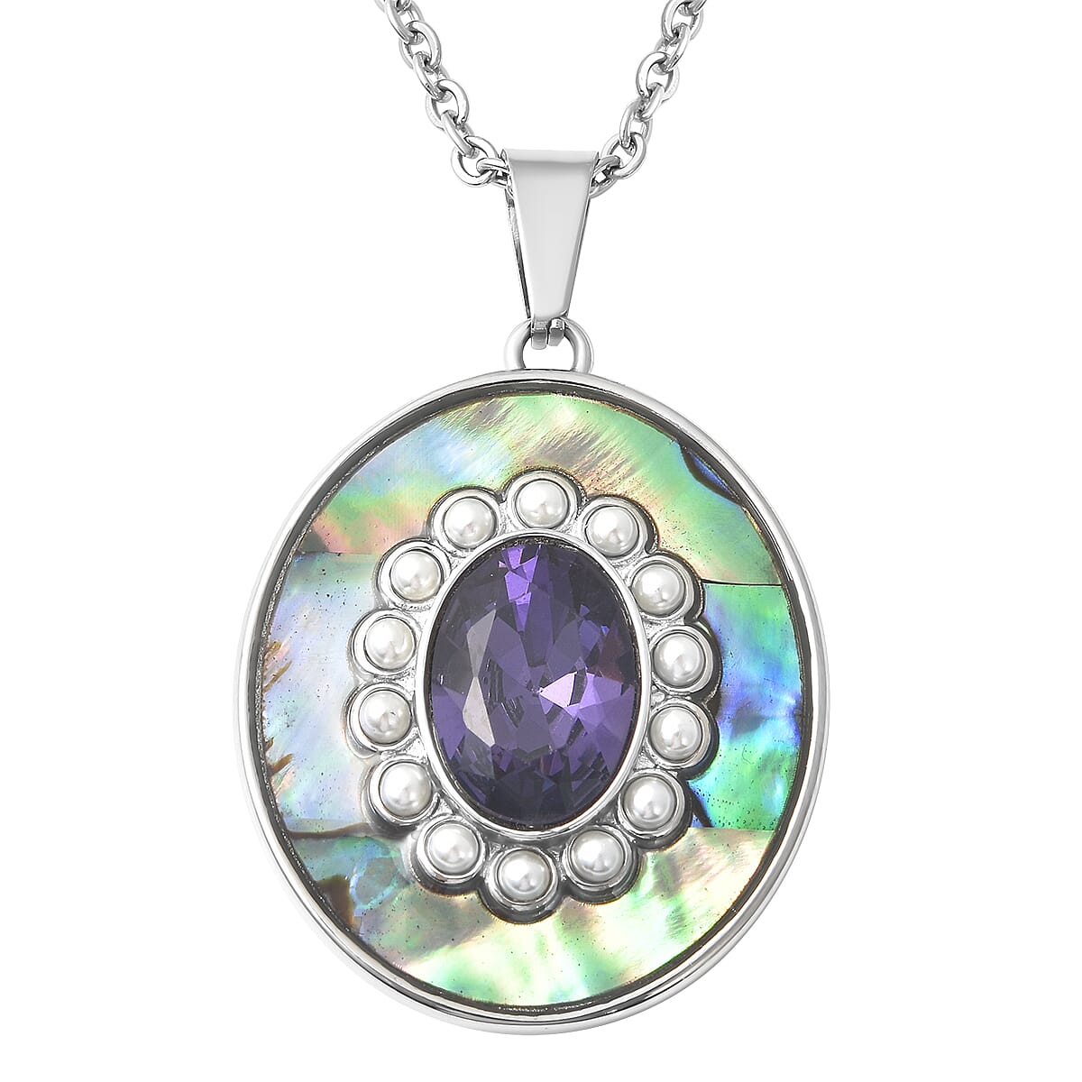 Simulated Purple Diamond and Multi Gemstone Statement Pendant Necklace 20 Inches in Stainless Steel 1.75 ctw