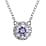 Simulated Purple Diamond and Simulated Diamond Halo Necklace 18 Inches in Silvertone