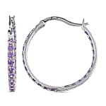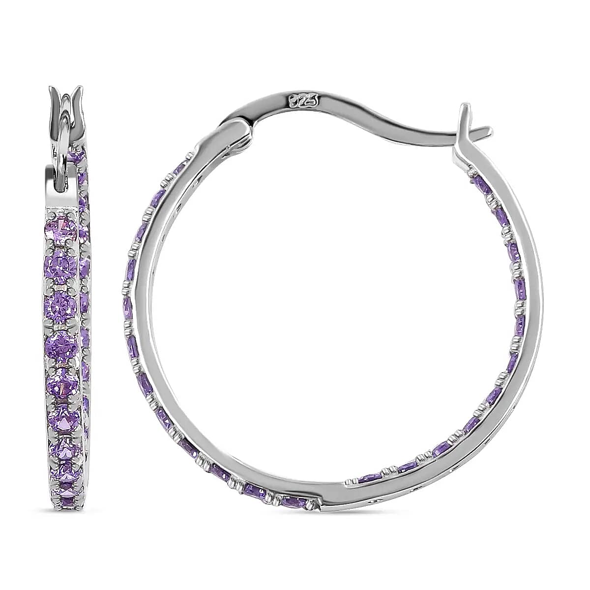 Simulated Purple Diamond Hoop Earrings in Sterling Silver, Silver Hoops For Women