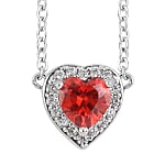 Simulated Red Diamond and Simulated Diamond Heart Halo Necklace 18 Inches in Silvertone 0.20 ctw