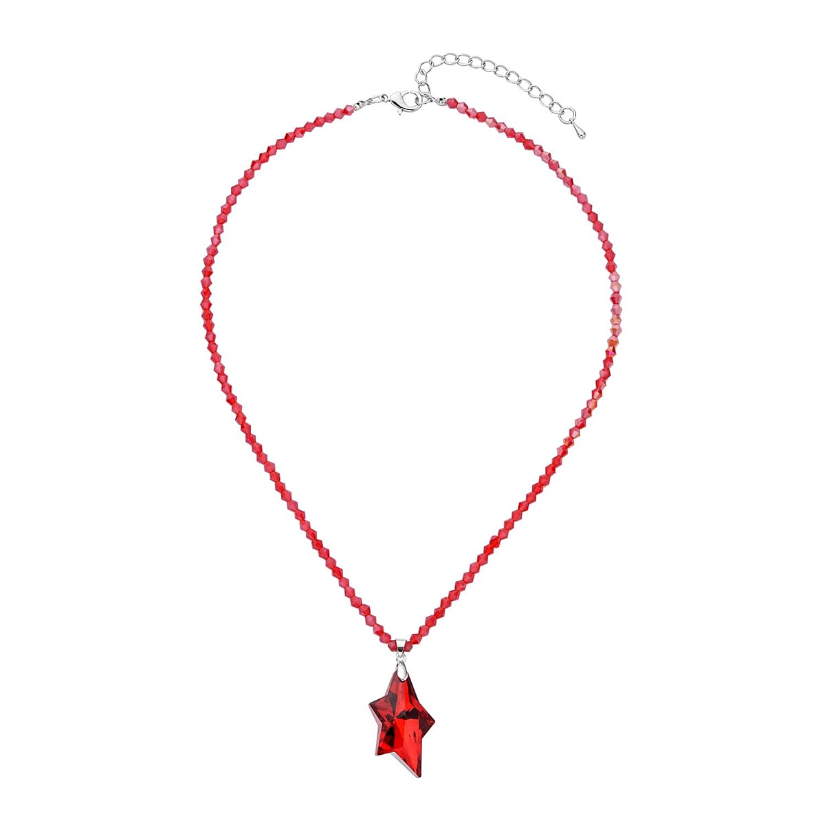 Simulated Ruby Star Pendant with Beaded Necklace in Silvertone 20-22 Inches