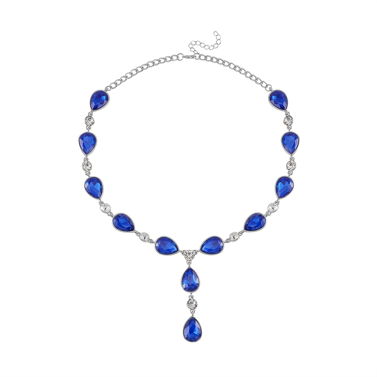 Simulated Sapphire and White Austrian Crystal Lariat Necklace in Silvertone 20-22 Inches