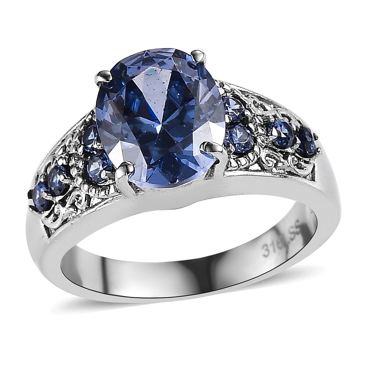 Simulated Tanzanite and Simulated Blue Diamond 4.80 ctw Ring in Stainless Steel (Size 11.0)