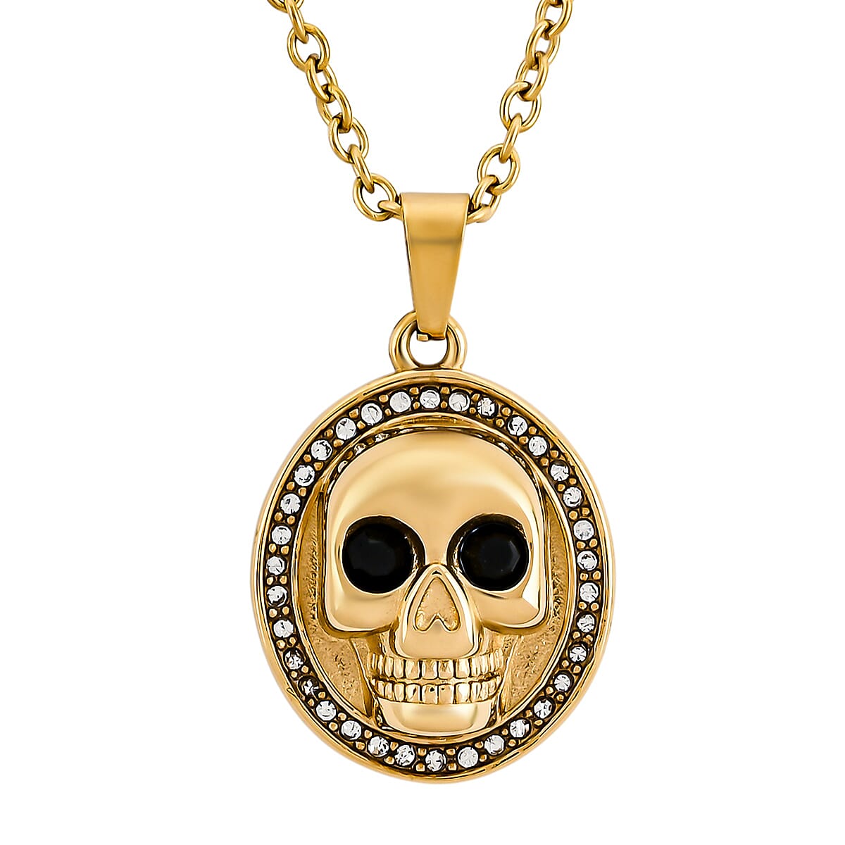 Simulated White and Black Diamond Skull Pendant Necklace (20-22 Inches) in ION Plated YG Stainless Steel