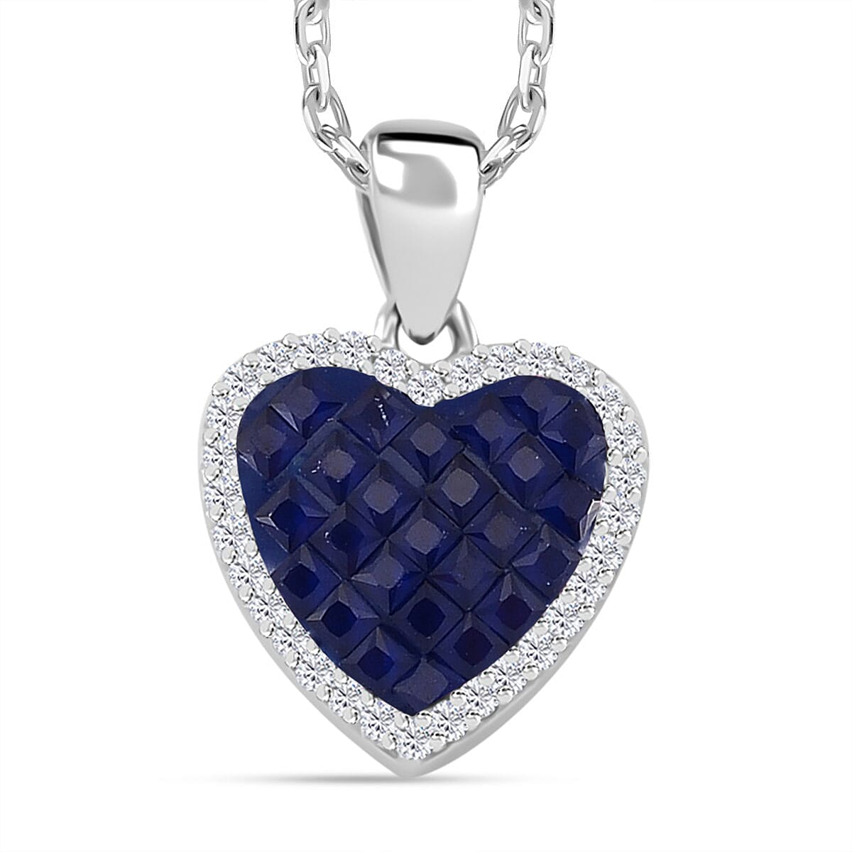Simulated White and Blue Diamond Heart Pendant Necklace in Rhodium Over Sterling Silver 20 Inches