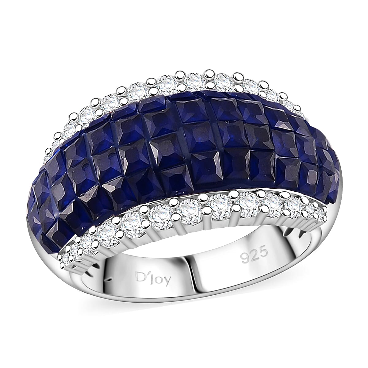 Simulated White and Blue Diamond Ring in Rhodium Over Sterling Silver (Size 5.0)