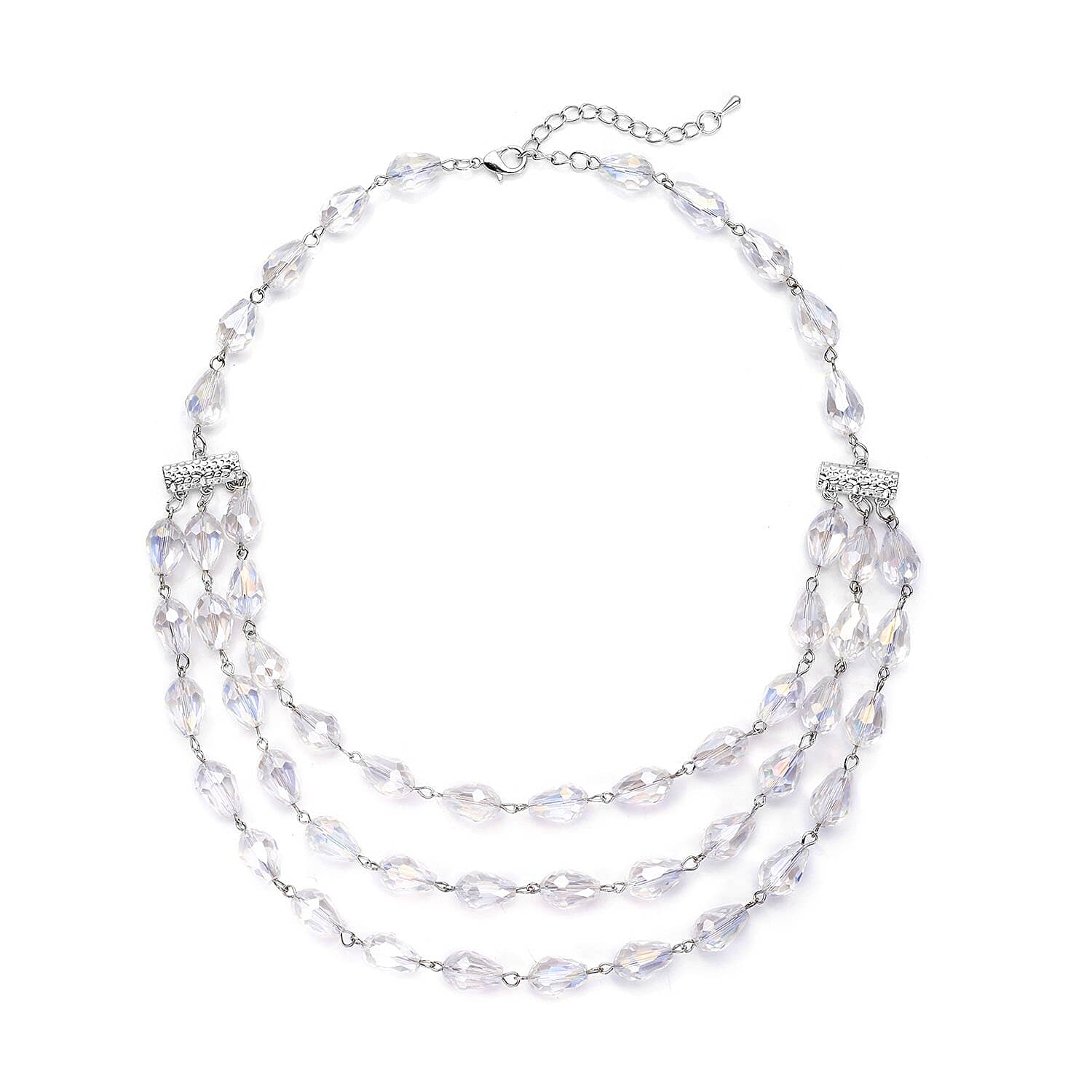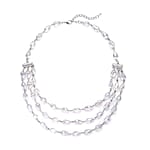 Simulated White Aurora Borealis Beaded Layered Necklace in Silvertone 22-24 Inches