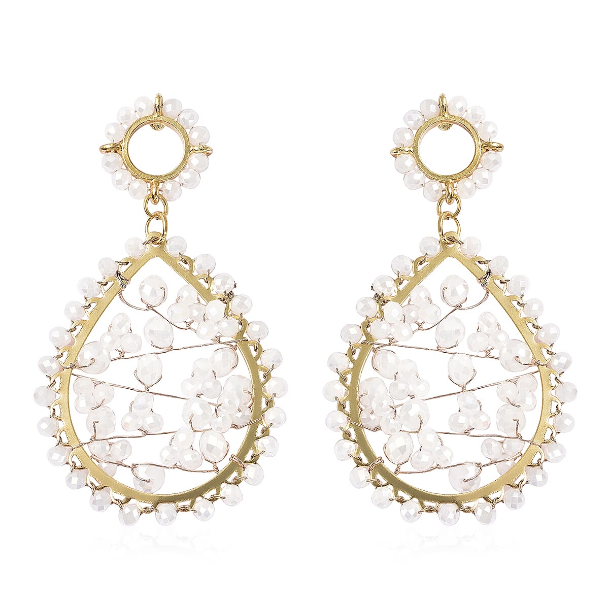 Simulated White Aurora Borealis Topaz Drop Earrings in Goldtone
