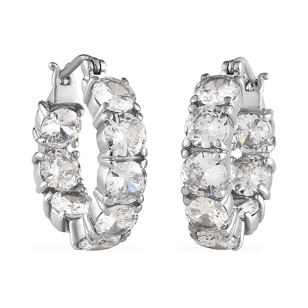 Simulated White Diamond Hoop Earrings in Stainless Steel 21.10 ctw