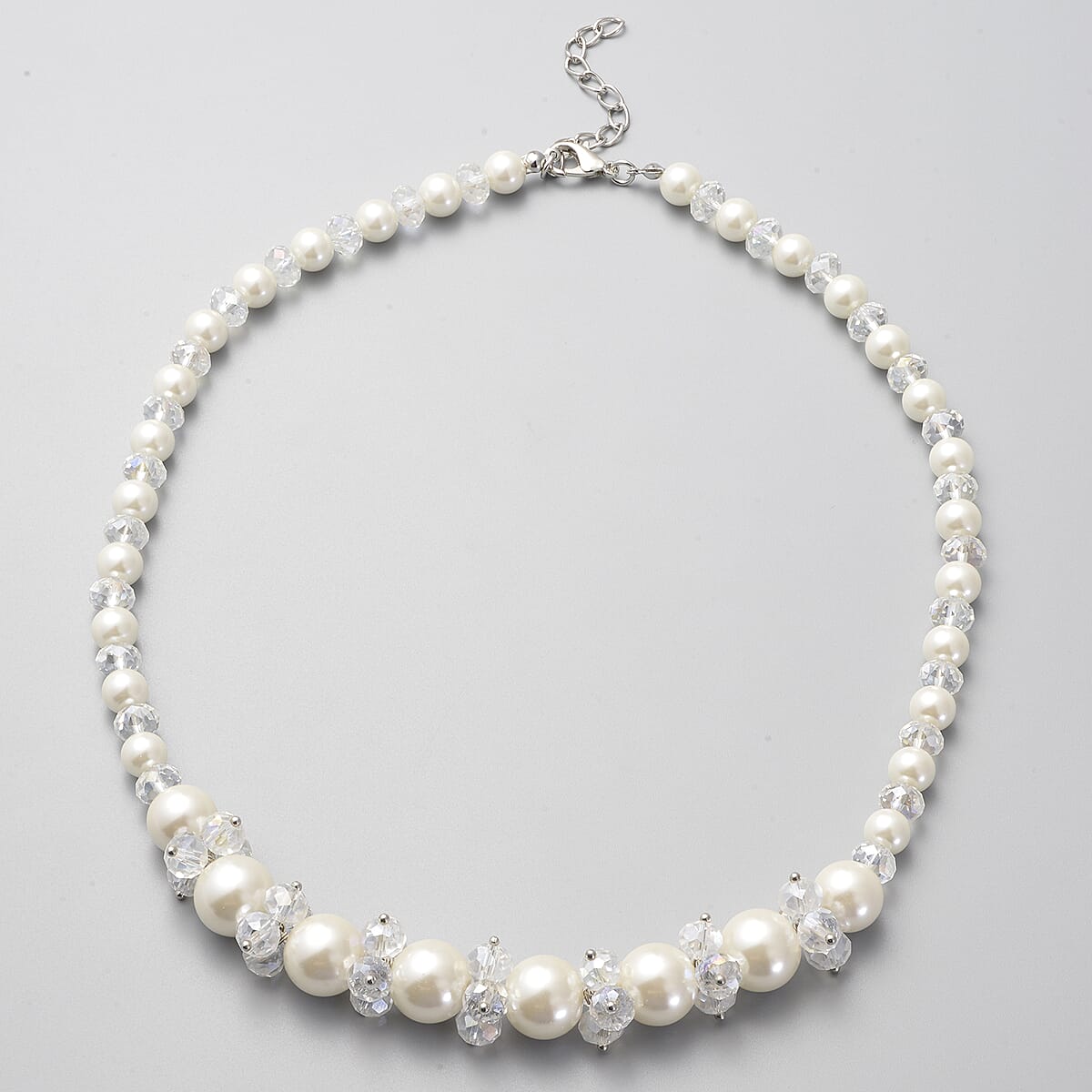 Simulated White Pearl and Glass Beaded Necklace 20-22 Inches in Stainless Steel