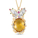Simulated Yellow Sapphire, Simulated Multi Color Diamond Pendant Necklace in Goldtone and ION Plated YG Stainless Steel 20 Inches, Tarnish-Free, Waterproof, Sweat Proof Jewelry