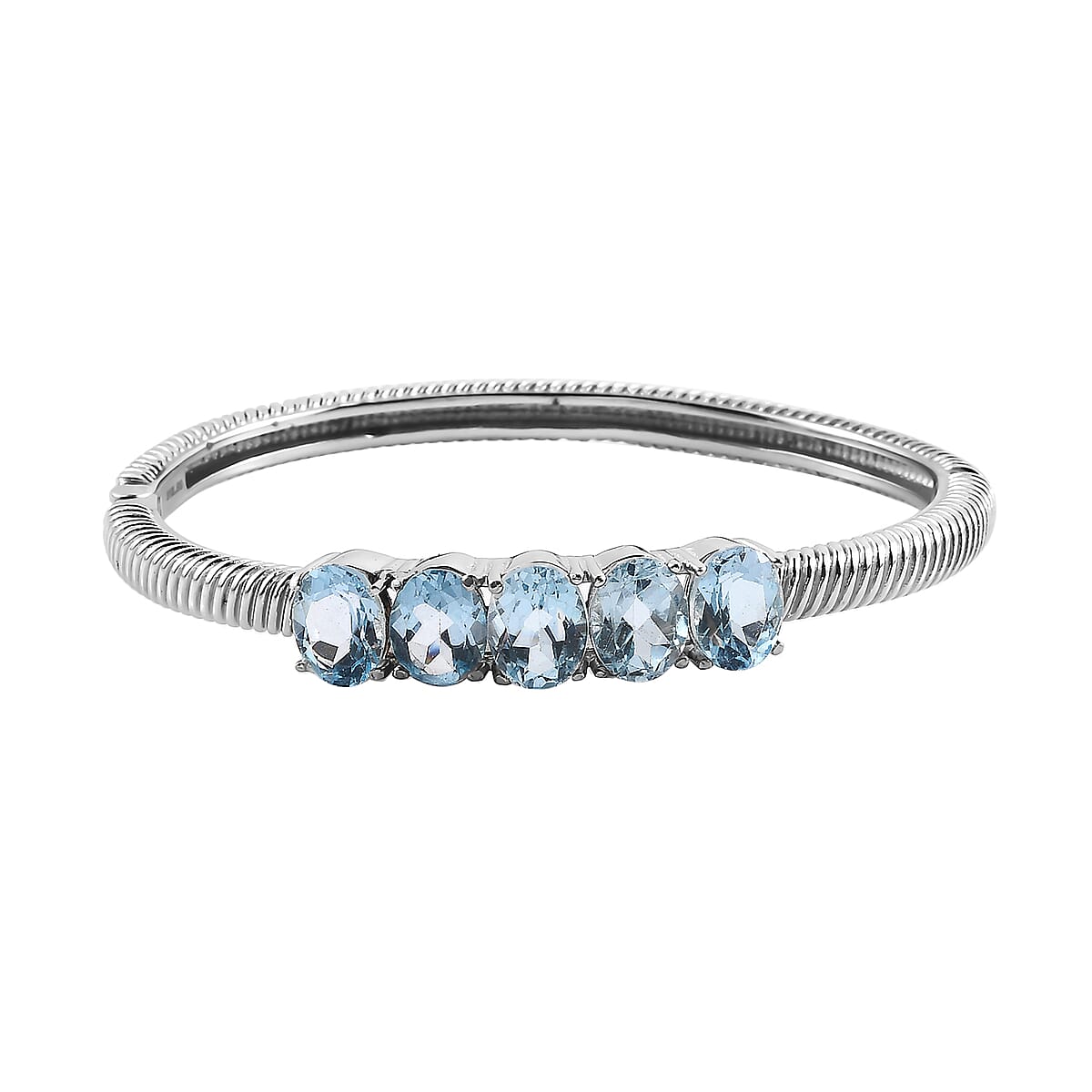 Sky Blue Topaz 5 Stone Bangle Bracelet in Stainless Steel (7.25 In) 9.50 ctw