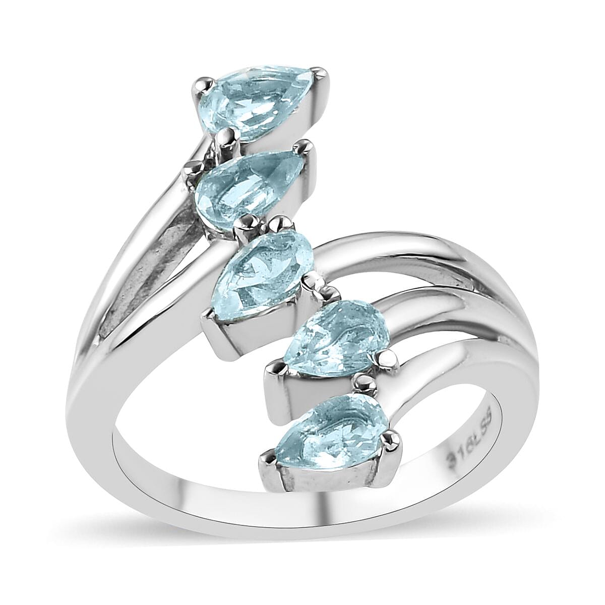 Sky Blue Topaz 5 Stone Ring in Stainless Steel (Size 10.0) 1.25 ctw | Tarnish-Free, Waterproof, Sweat Proof Jewelry