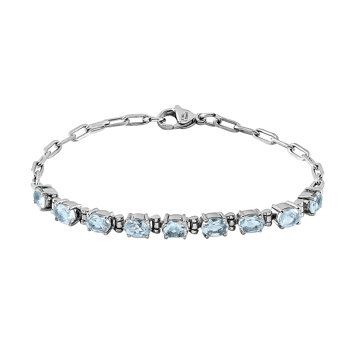 Sky Blue Topaz 5.75 ctw Bracelet in Platinum Bond and Stainless Steel (7.25 In)